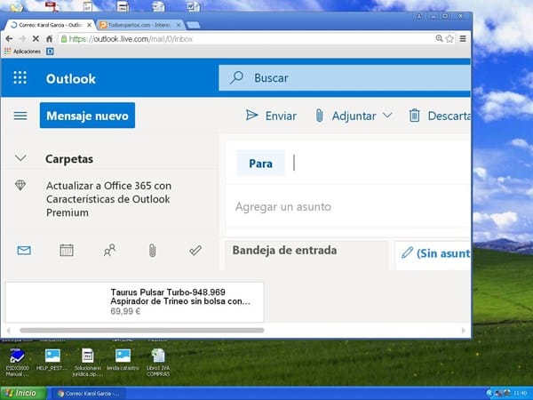 No se que he hecho que la pantalla de outlook me sale inmensa y no me deja trabajar bien. He hecho una captura de pantalla, pero no se si se arpeciará bien el problema.