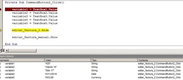 El caso es que al darle a un segundo botón, me abre un segundo formulario en el que me añade un Textbox extra para modificar el texto que aparece en la factura. Además, me mantiene los datos anteriores para asegurarme de que estoy modificando la factura correcta. Lo hago así (recordad que es un formulario distinto):