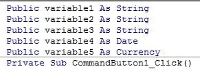 Como veis, al final todo le doy valor a ciertas variables. Variables que dentro del propio formulario están declaradas públicas de la siguiente manera:
