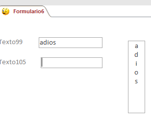 El cuadro de texto de la derecha se llama Texto101. El código del evento Después de actualizar(aunque se podría poner en otro evento cualquiera, incluso en el evento al hacer clic de un botón) es