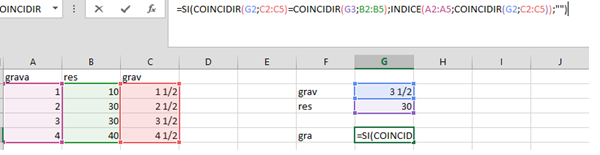 1.- En la tabla de datos de arriba, busco devolver el valor de la columna "Arena" siempre y cuando cumpla con 2 condiciones,"Resistencia" y "Grava", ejemplo: