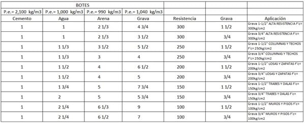Si busco una resistencia de: "100" con grava: "1 1/2", el resultado de arena seria: "6 1/3"