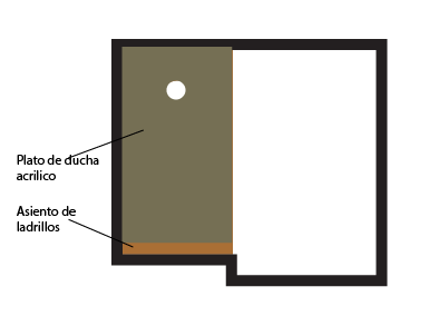 Os comparto una imagen de la instalación que voy a hacer. El plato de ducha es de 120cm y se coloca sobre un asiento de ladrillos pero entre pared y pared hay unos 125 cm. ¿Cómo relleno este espacio de 5cm?