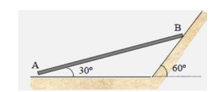 Una barra homogénea de 200 N de peso y longitud l se apoya sobre dos superficies tal como muestra