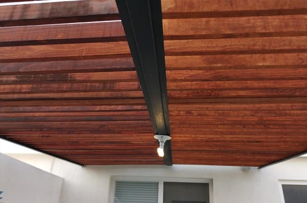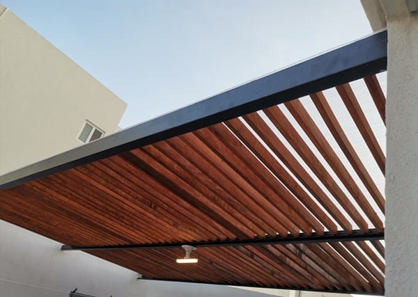 Quiero colocar una pergola de 2.5 m por 3.45., con unas vigas en Acero alas cuales posteriormente planeo adornarlas con Madera de 1 pulgada o 1 y media.