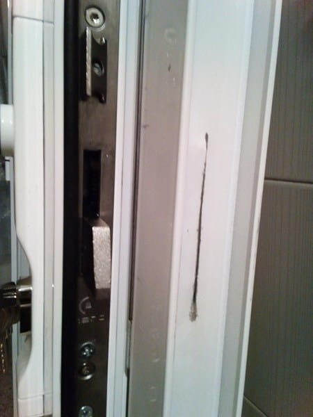 ¿Es normal lo de esas muescas en el marco detrás de la cerradura?