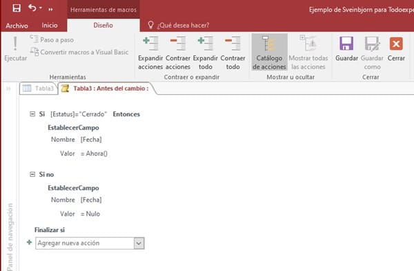 La idea es que cuando el campo [Estatus] sea igual a "Cerrado", el campo [Fecha] sea igual a la hora y fecha del sistema.