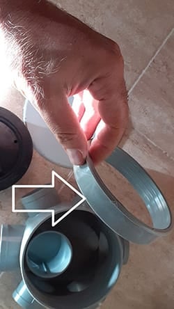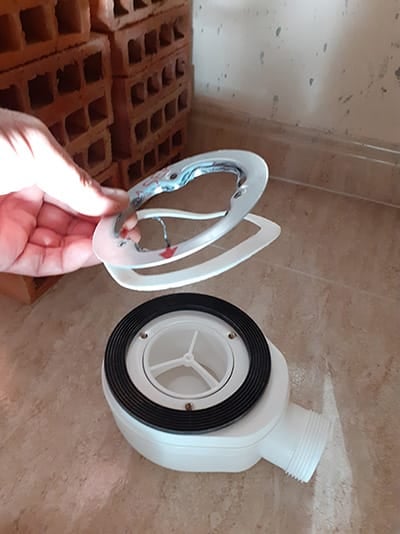 3) En cuanto la válvula para el plato de ducha, fijaos la foto siguiente. ¿La parte negra va por debajo del plato de ducha y la parte blanca arriba verdad?