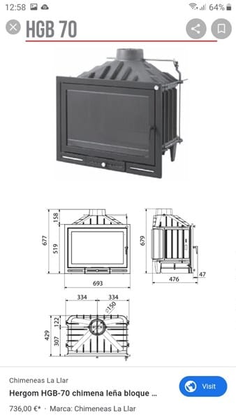 En los próximos días instalaremos una chimenea en casa, y hemos comprado un hogar de hierro fundido a leña que vamos a cerrar con obra. Tenemos bastantes dudas en como hacer el cerramiento, aunque a partir del dintel lo tenemos bastante claro. Irá colocada sobre una buena base con hormigón a 30 centímetros del suelo (¿es esta medida correcta?) Y a partir de ahí es donde tenemos dudas de como hacerlo hasta llegar al dintel. ¿Se hace el cerramiento con ladrillos refractarios? ¿Y hasta dónde se ponen? De dintel queremos poner una madera de sabina, bastante típica de esta zona de Baleares. A partir del dintel la campana se hará con un doble tabique con planchas de lana de roca en medio de los dos tabiques y con la correspondiente rejilla superior para ventilar la campana y devolver el aire caliente al salón. También lleva una entrada de aire exterior a ras del suelo por dentro del revestimiento.