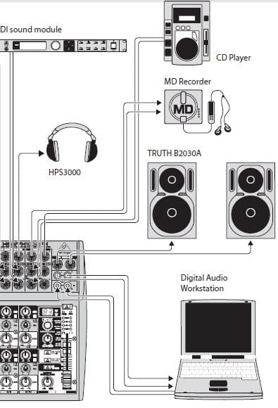 Cuál es la mejor manera o de mayor calidad para conectar el ordenador portátil o el móvil a una mesa de mezclas y de ahí a dos altavoces activos.