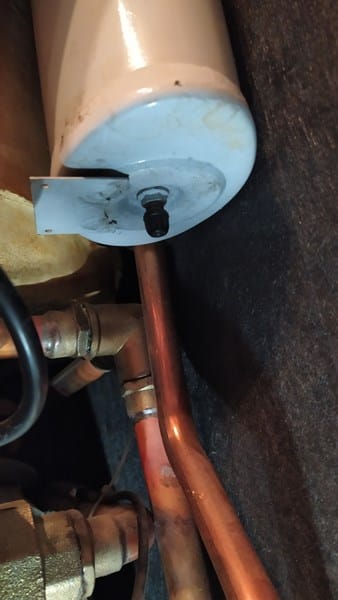 Pero en el vaso blanco que creo que es el de ACS, si pincho igualmente sale solo agua -este tiene el obús (o válvula de inflado) por abajo (aquí se ve), por eso creo que está mal y que es el causante: