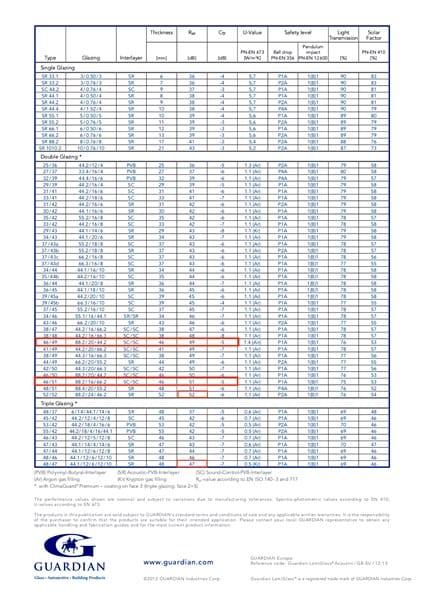 Yo mirando las especificaciones de los cristales Guardian Sun estaba pensando en un 88.2/20/44.2 (RW 49, ctr -5) o 88.2/16/66.2 (RW 51, Ctr -5). He utilizado esta tabla de Guardian Sun.