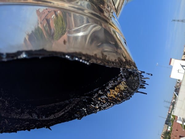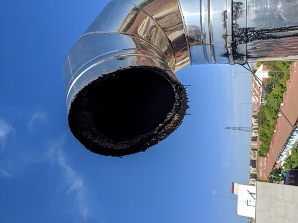 Ahora mi pregunta es - después de ver esas fotos, como de pringosa y supurando aceite esa chimenea- 1) ¿Ese tipo de chimeneas no tienen algún tipo de mantenimiento? 2) ¿Es normal el estado que presenta supurando aceite? Y por último, 3) ¿Cómo puedo argumentar - más allá de los olores - para que no solo pongan un metro mas de tubería y la orienten como indica la normativa, sino que procedan a limpiar esa chimenea?