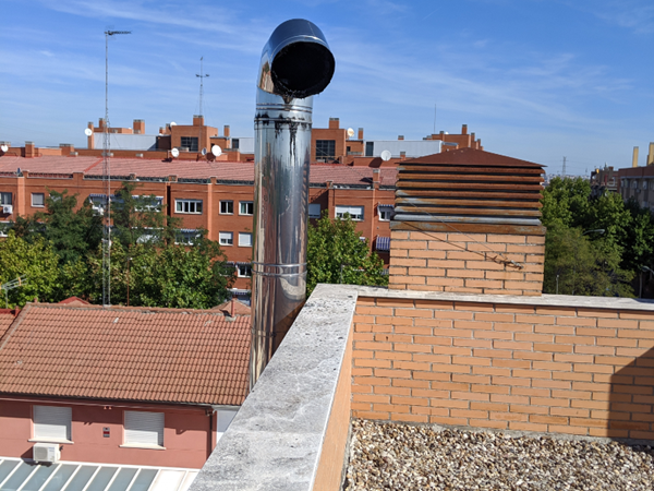 Como podéis ver en la foto, nada de eso se cumple y además el tiro esta orientado para que saga justo encima del edificio, yo vivo en el último piso... Alucinante como se pueden hacer las cosas tan cutremente.