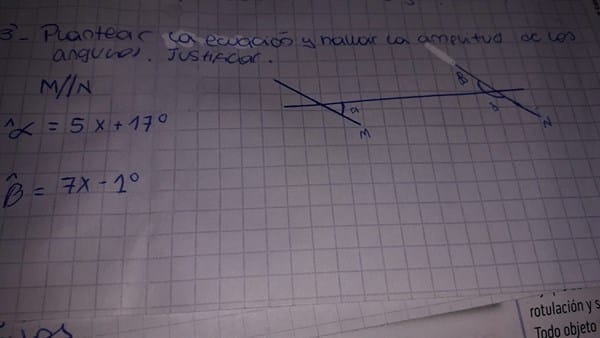 Plantea la ecuación y hallar la amplitud de los ángulos dados en la imagen