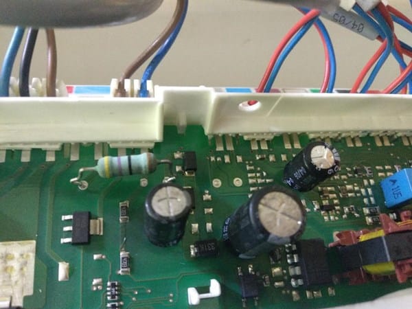 Y le he echado alcohol isopropílico a la placa que no tengo claro si un condensador está bufado (por si puedes ver la foto).