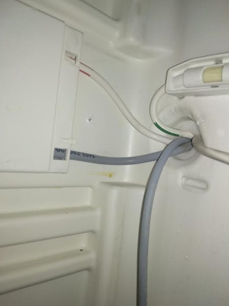 - La que va al compartimento con la luz de la nevera y que tiene una raya ROJA.