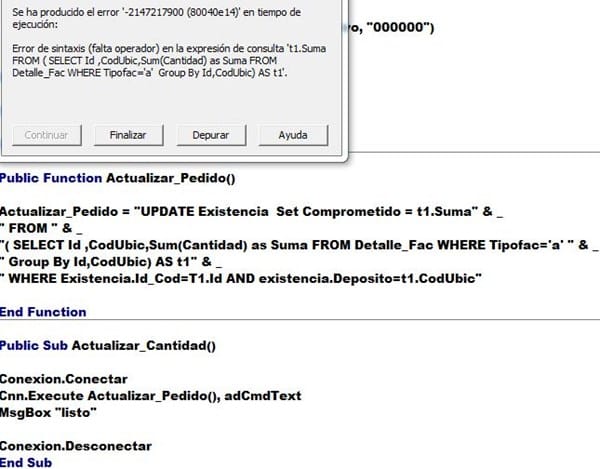 Error al tratar de actualizar el campo de una tabla con los datos de otra tabla consulta sql update