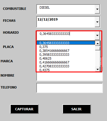 Como mostrar un Combo box el formato de "hora en una lista despegabel de un tabla3" ya que me muestra decimales el formulario