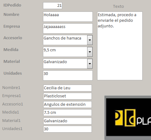 En la imagen adjunta, podran notar que se repiten los campos... "Nombres, empresas, medidas.." Etc.. Ahora.. El inconveniente es que lo que escribo en el primer campo "Nombre", también aparece en el segundo... Lo que me gustaría hacer es que se registren de diferente manera.. Pero en un solo campo.. Por ejmp:
