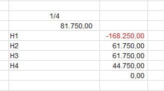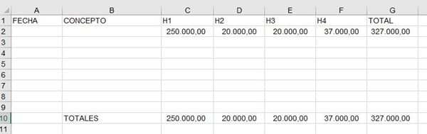 ¿Por favor con una fórmula de Excel como calcular cuanto debe recibir el hermano 1 de sus otros hermanos dado que fue el que más gasto?