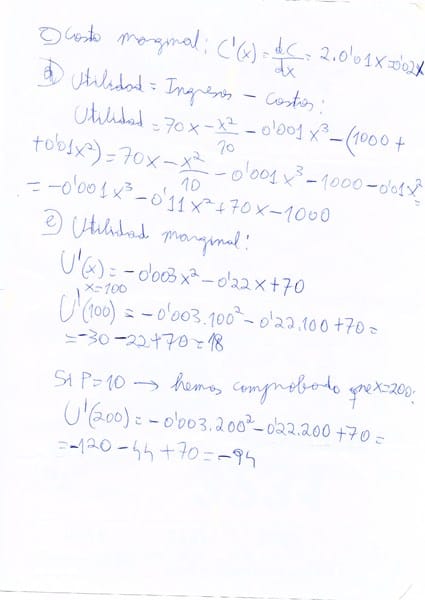 c) Determine la función de costo marginal d) Determine la función de utilidad e) Determine la función de utilidad marginal si x=100 y p= 10
