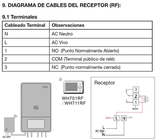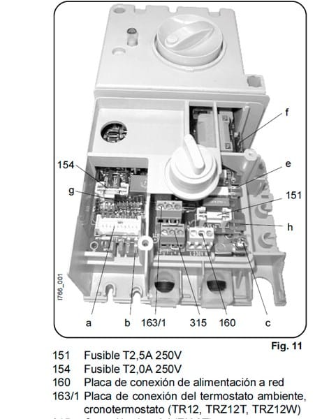 Esquema del cableado de la conexión eléctrica en la caldera: