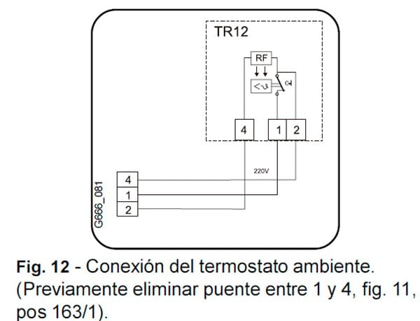 Esquema de la conexión del termostato que tengo instalado (TR12):