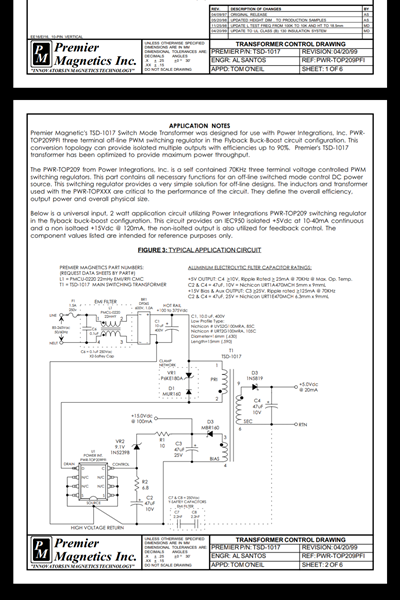 El circuito TOP209P es un circuito de control y potencia integrados que forma un convertidor tipo Flyback completo, que puede proporcionar por medio de un transformador con núcleo de ferrita muy variadas tensiones. Es, con solo el añadido de unos pocos componentes adicionales una fuente de alimentación. Vea: