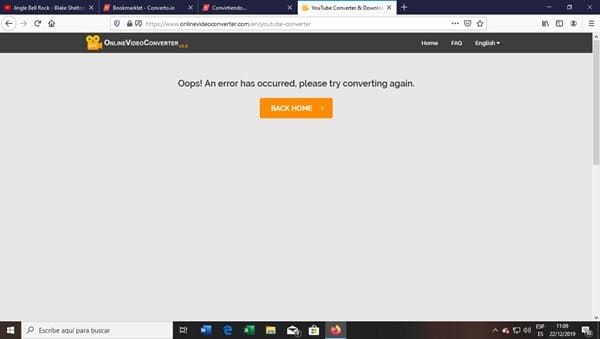 Desde hace algunos días al intentar descargar videos o música de youtube arroja un error como el que muestro en captura, ¿la página se encuentra con algún problema técnico? ¿Otros ya tuvieron el mismo problema?
