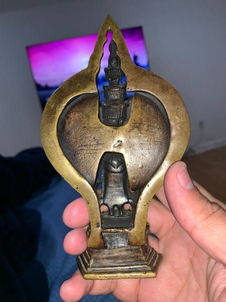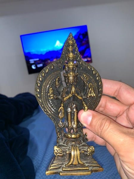 Compre esta pequeña figura hindú de kali no estoy seguro del material parece latón no se cuanto vale y que tiempo tiene