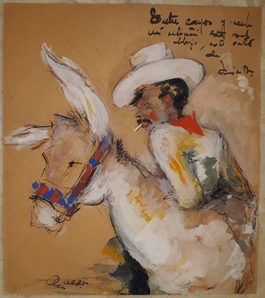 Tengo el cuadro que adjunto con una firma y un texto ilegibles. ¿Hay alguien que sepa quien es el autor o qué es lo que pone en firma y/o texto?