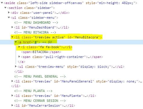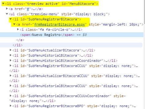 linea de la pagina web "xpath=//li[@id='MenuBitacora']/a/span"