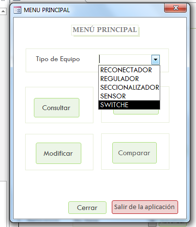 Hola, tengo varios formularios a los cuales quiero acceder a través de estos cuatro botones, pero actualmente solo me lleva a los formularios de reconectadores, quisiera que cuando seleccione cualquiera de estos 5 que están el la lista desplegable pueda utilizar estos mismos cuatro botones para buscar los formularios de cada uno.