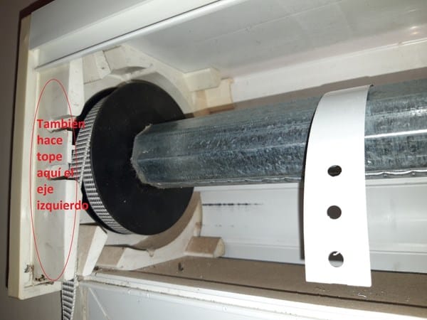 Las persianas de mi casa son de PVC creo que del tipo "monoblock" por lo compactas. El caso es que ayer se me rompió la cinta de una de ellas y decidí arreglarla yo mismo. Pude extraer la tapa que está encajada haciendo palanca con un simple destornillador. También pude extraer la cinta rota, ya que va adherida con un simple tornillo y también pude sustituirla. El caso es que me estoy planteando domotizarlas y me puse a intentar extraer el eje para ver las posibilidades de hacerlo mediante un motor de tipo eje. Pues por más que intenté extraerla, haciendo palanca, empujando, moviendo, etc. Lo más que pude hacer es extraerla de los portaejes, pero, una vez fuera, parece que no hay espacio suficiente para sacarla. Tampoco parece que tenga algún tipo de muelle que aporte la posibilidad de acortarla un poco. Os dejo unas fotos de los 2 extremos y a ver si alguien se ha encontrado con alguna similar.