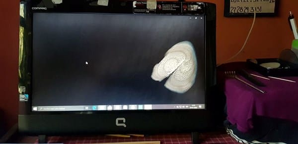Que debo o puedo hacer para eliminar esas manchas. La mancha no sale en las capturas de pantallas. A veces se reduce y otras se agranda. Al inicio tenia forma de huella digital de dedo pulgar y era solo una, ahora son dos unidas, pero estuvieron separadas.