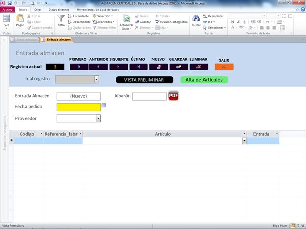 Tengo un formulario [Entrada_almacen] con un subformulario [Subformulario entradas almacen] en el que quiero que se vallan añadiendo los registros; Código (es un campo calculado), Artículo (combobox, porque también lo puedo seleccionar y si lo hago así, también adjunto el código y la referencia del fabricante, que eso lo he conseguido) y Referencia_fabricante(texto).