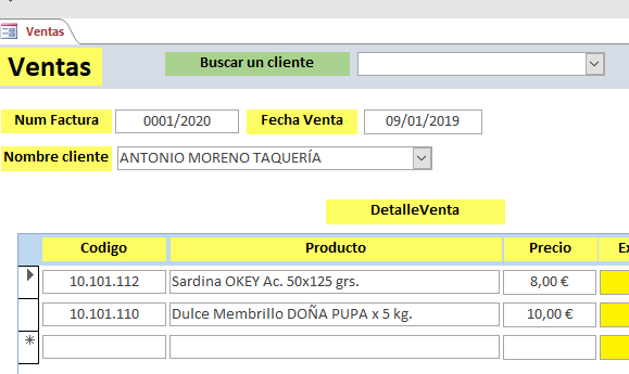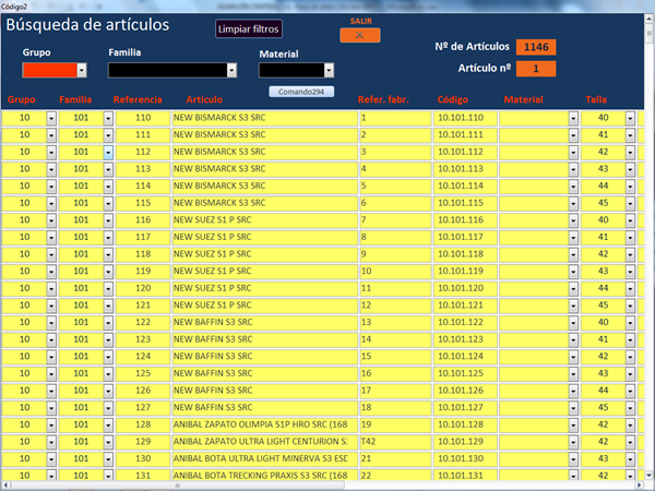 Los campos quiero ir filtrándolos desde otro formulario de artículos que se llama [Código2]. Es un formulario dividido y la idea es que cuando seleccione el registro deseado, uno a uno, con un botón se me vallan añadiendo.
