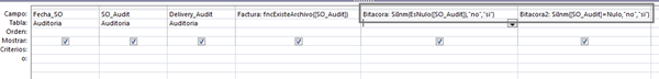 Estoy hacienda una consulta a la table "Auditoria" pero necesito crear una columna en la misma consulta, donde vaya y busque si existe mi campo "SO_Audit" en la table "Deliveries" y me coloque "SI o NO" dependiendo sea el caso.