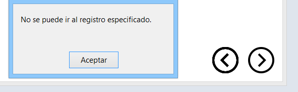 Este es el formulario con los correspondientes botones de navegación. Como notaran al llegar al ultimo registro en la navegación access muestra un mensaje.