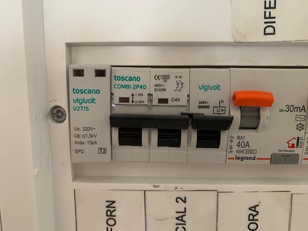Me compré un piso hace 1 año y hasta ahora no le he dedicado mucho foco al cuadro eléctrico. Os adjunto una imagen de la parte de éste más cercana a la compañía eléctrica. Me gustaría conocer vuestra opinión, sobretodo centrada en mejoras que se os ocurran y que tengan sentido. Quiero asegurarme de que que ante subidas de tensión, o descargas eléctricas por lluvia, etc., estoy bien protegido.