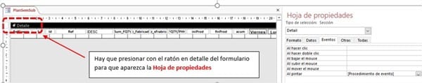 Private Sub Detalle_Paint() If IsNull(Me.Ref) Then Me.Ref.BackColor = RGB(205, 205, 255) 'Gris If Me.Parent.Turno= "Tarde" Then Me.Ref.BackColor = RGB(255, 153, 204) 'Rosa If Me.Parent.Turno= "Noche" Then Me.Ref.BackColor = RGB(255, 255, 102) 'Amarillo If Me.Parent.Turno= "Mañana" Then Me.Ref.BackColor = RGB(87, 143, 255) 'Azul End Sub