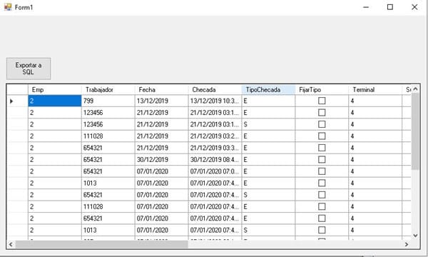 Error al exportar a SQL Server desde DataGridView que muestra información de Access