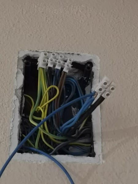 Tengo en el salón dos lámparas de techo que van conectadas al mismo interruptor, (realmente van a dos en dos paredes distintas) quería separarlas, ya que una de ellas no la tenemos encima y de paso poner un interruptor que conecte con Alexa. La cuestión es que compré uno y me dispuse a hacer la instalación, abro el antiguo y me encuentro, un cable marrón y dos grises. Saco de la caja más cercana un cable azul para el neutro. Ahora viene el montaje, N azul, L marrón y L1 y L2 grises y el interruptor da una chispa de color en su base y ya no se enciende nada, ni la base (que se supone que es azul) ni las lámparas. He probado con una lámpara de pie por si estuviera averiado el interruptor pero funciona bien, entonces, ¿qué hago mal?