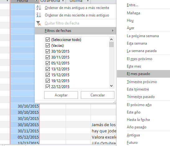 ¿Cómo puedo hacer uso de las opciones que tienen los menús integrados de Access?