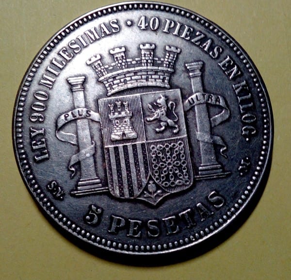 Tengo una moneda de 5 pesetas de soberanía nacional de 1870, la he pesado y pesa 23 gramos, no se pega al imán, sera falsa, un saludo y gracias.