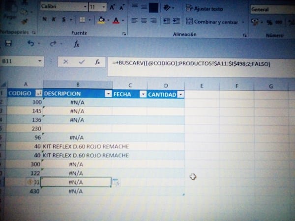 Fórmula buscarv en Excel, no me reconoce todas las ref. Que tengo (500) es un inventario de una tienda