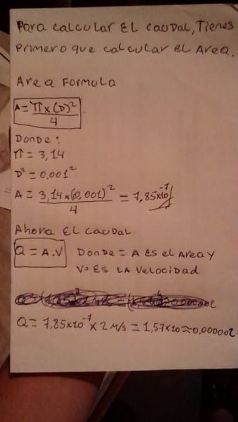 ¿Tenemos una instalación de agua con un tubo de 10cm'2 de sección por el cual circula agua a 2m/s. Que cabal tiene esta instalación?