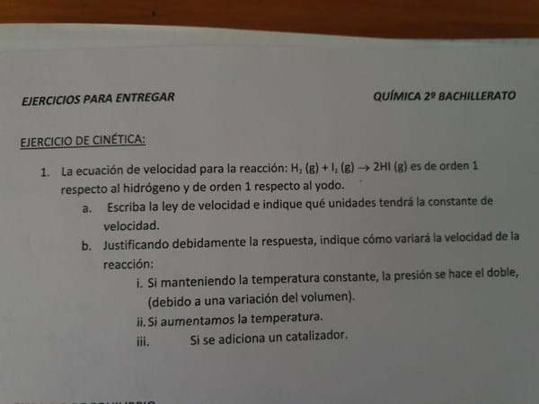QuímicaIngeniería IndustrialIngeniería Química Martin Muñoz el 6 feb. 20 ¿Cómo desarrollo este ejercicio de cinética química? Me ayudarían con el procedimiento del siguiente ejercicio de cinética química por favor Seguir Siguiendo Dejar de seguir