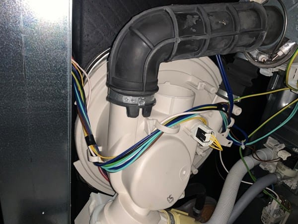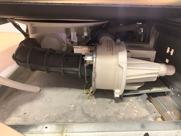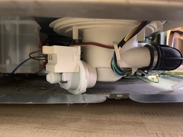 La mejor forma es poner de lado el lavaplatos (botonera de la puerta hacia arriba para que no le caiga agua a la electronica) y desmontar la mayor parte de tuberias de la parte de abajo.